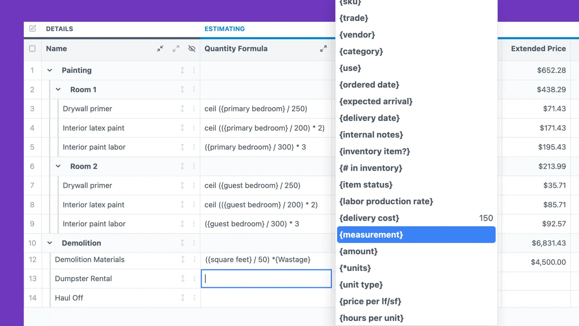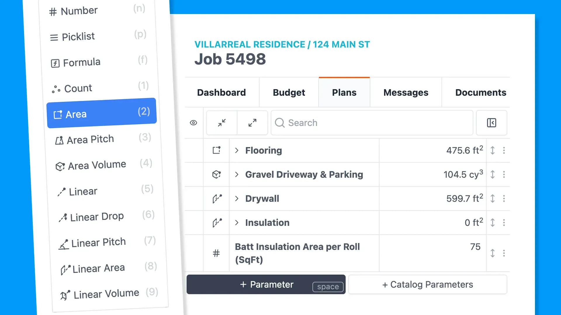 Streamline your takeoff process by uploading plans, setting scales, and measuring with precision. Use color-coded measurements, dynamic parameters, and formulas to calculate quantities, costs, and pricing. Fully integrated for accurate, detailed takeoffs.